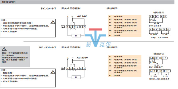 辅助开关 2xSPDT 3A, AC 230V(SY1); 2xSPDT 5A, AC 230V(SY2...12)