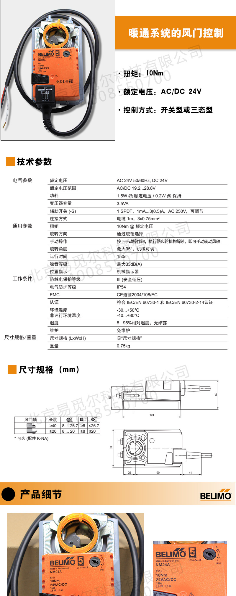 NM24A执行器专为暖通系统内的风门(风阀)控制而设计,其特点如下