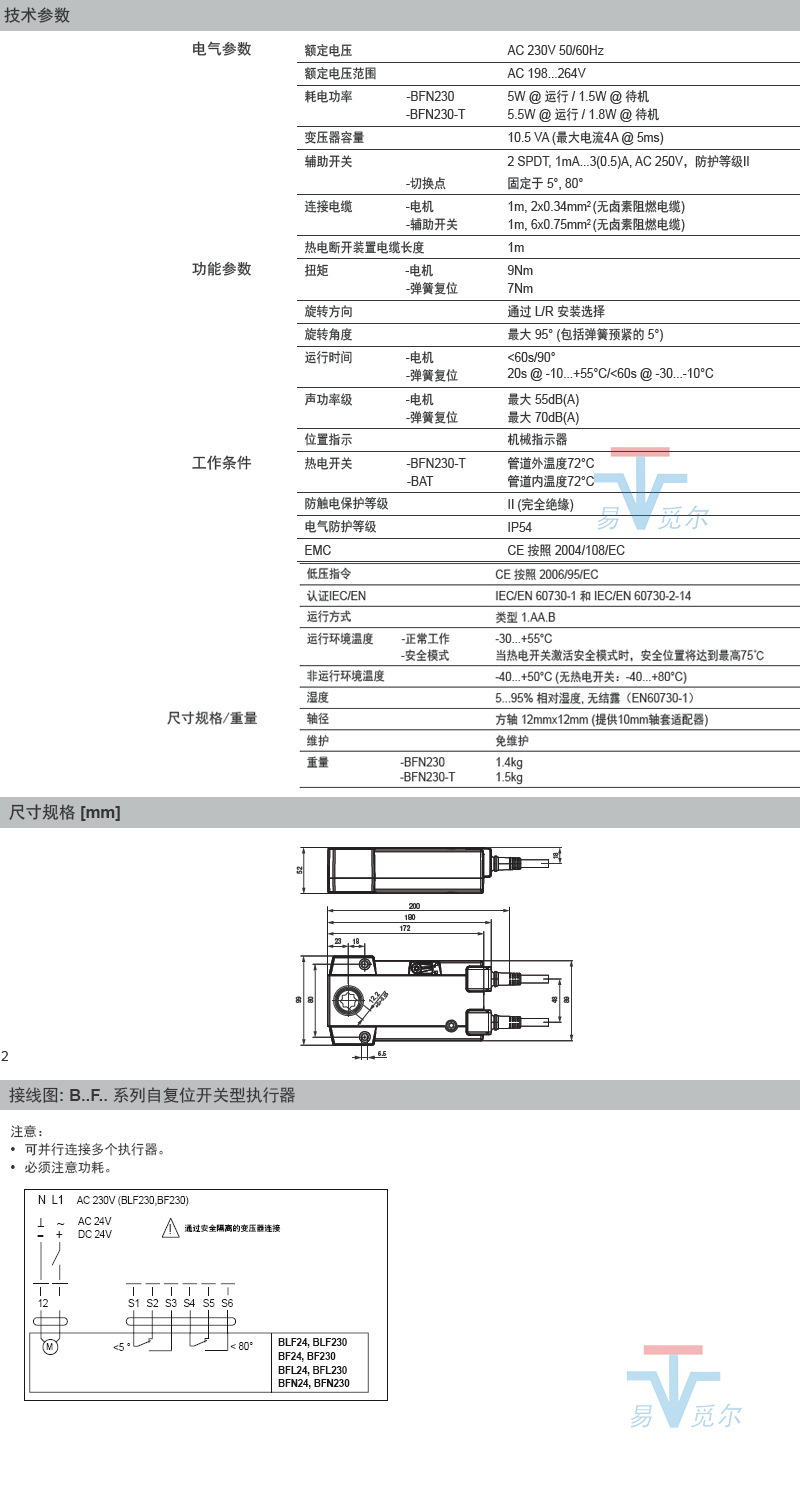 BFN230 防火排烟兴机械式自复位风门执行器,
