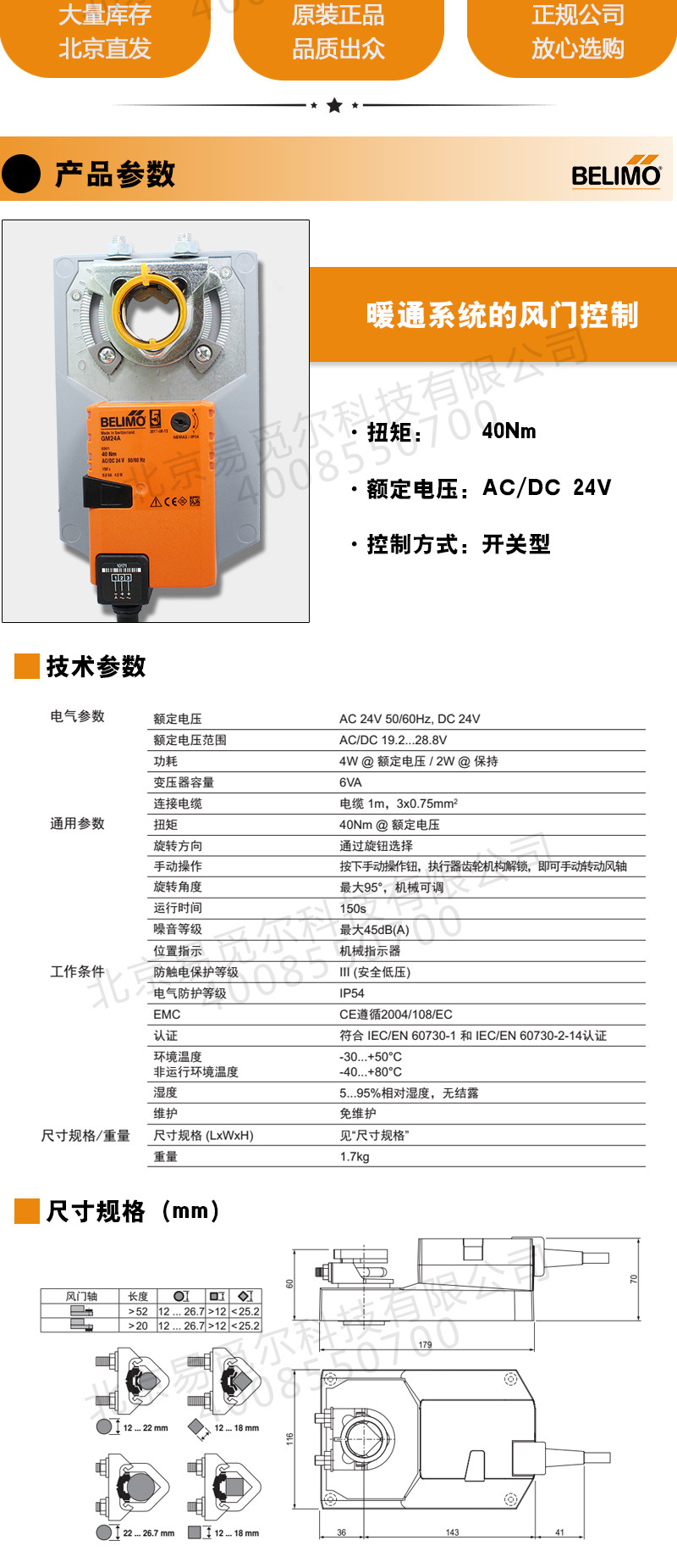 GM24A系列执行器专为暖通系统内的风门(风阀)控制而设计,其特点如下