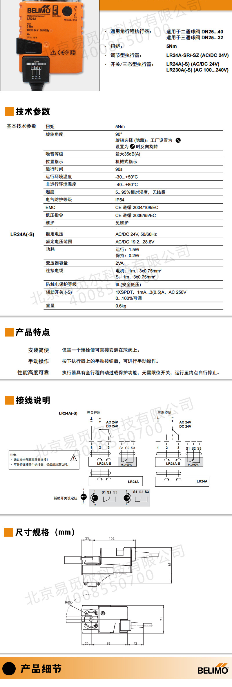 扭矩:5Nm 旋转角度:90° 噪音等级 :大35dB(A) 位置指示:机械式指示 运行时间 :90