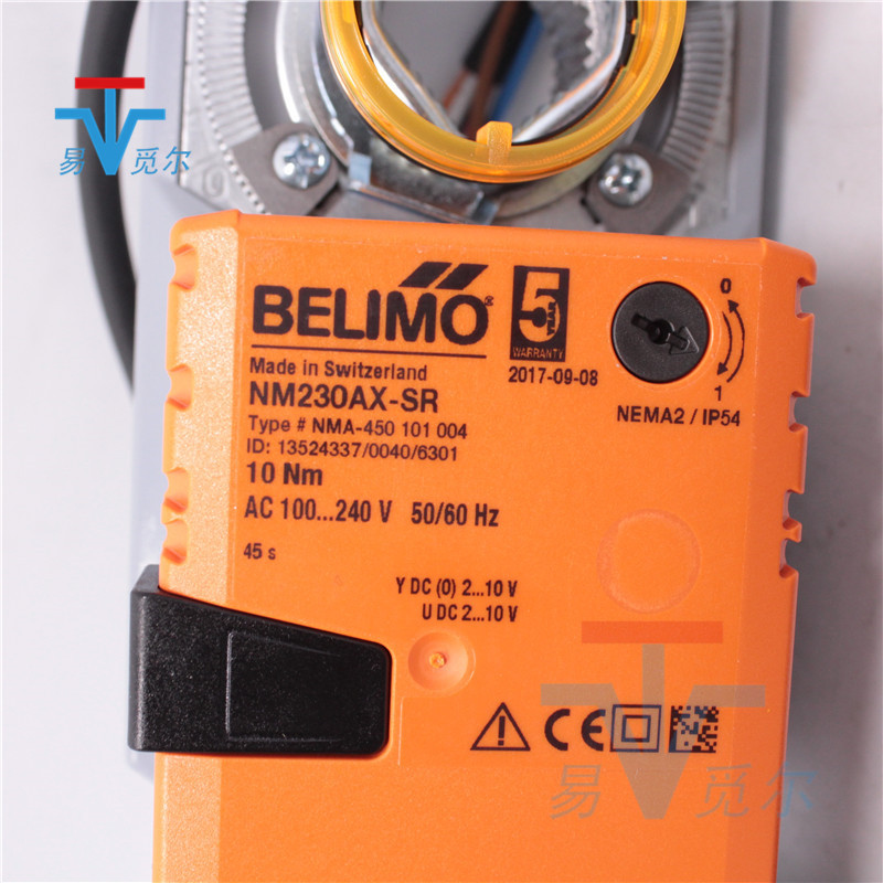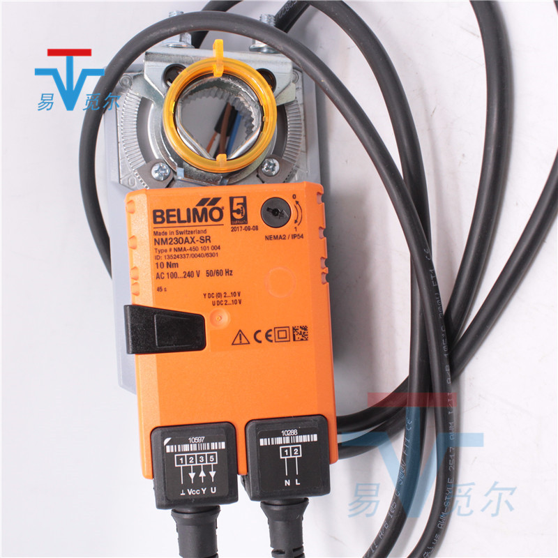 NM230AX-SR电动风阀执行器是瑞士BELIMO为中央空调系统设计制造的快速风阀执行器,该型号执行器电源电压是220VAC,使用市电电压,节省了因电压变压产生的成本,控制信号是2-10VDC模拟量信号,同时兼容0-10V控制信号,大限度兼容常用模拟量控制信号,输出扭矩是10NM,大可驱动2㎡的风阀。NM230AX-SR风阀执行器动作时间是35s,比一般的执行器快两倍。