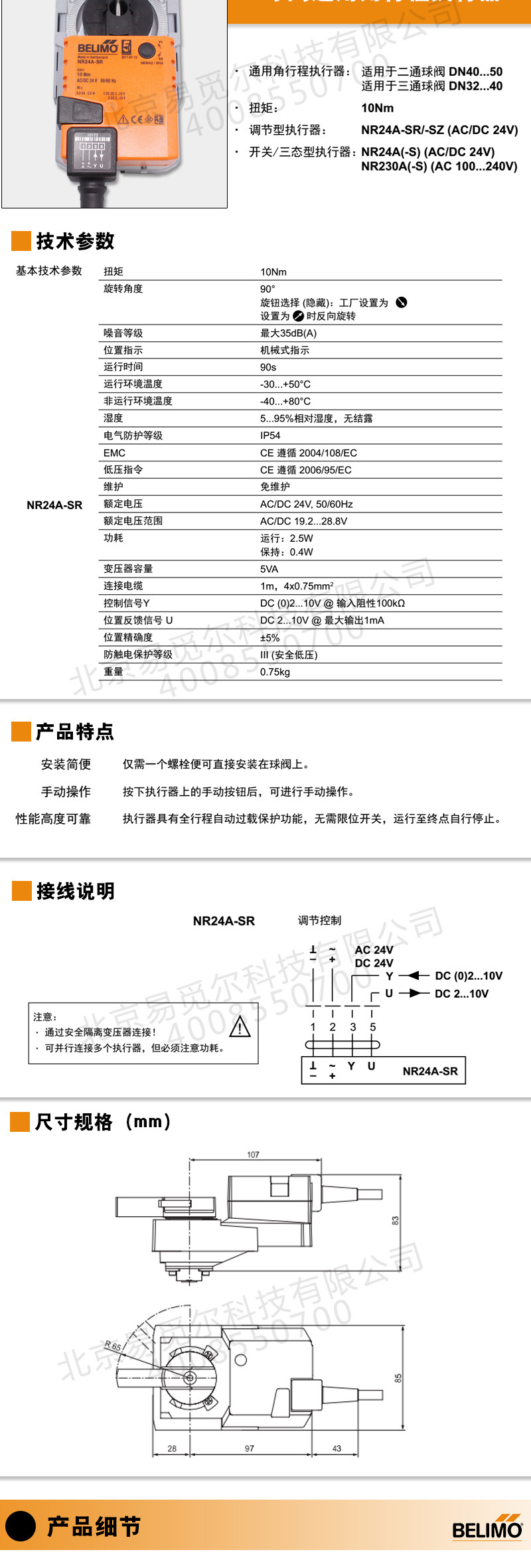 变压器容量:5VA 连接电缆 :1m, 4x0.75mm2 控制信号Y :DC (0)2...10V @ 输入阻性100kΩ