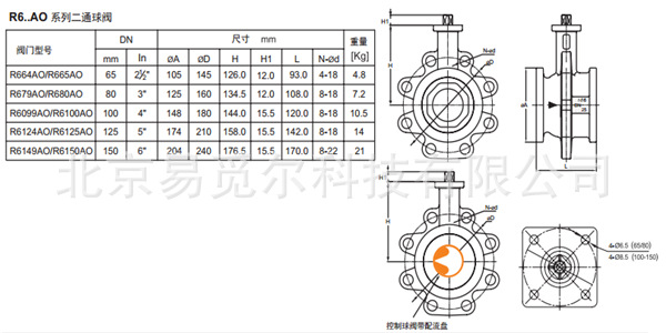 R6...AO系列球阀可用于冷、热水关断控制,DN65...150