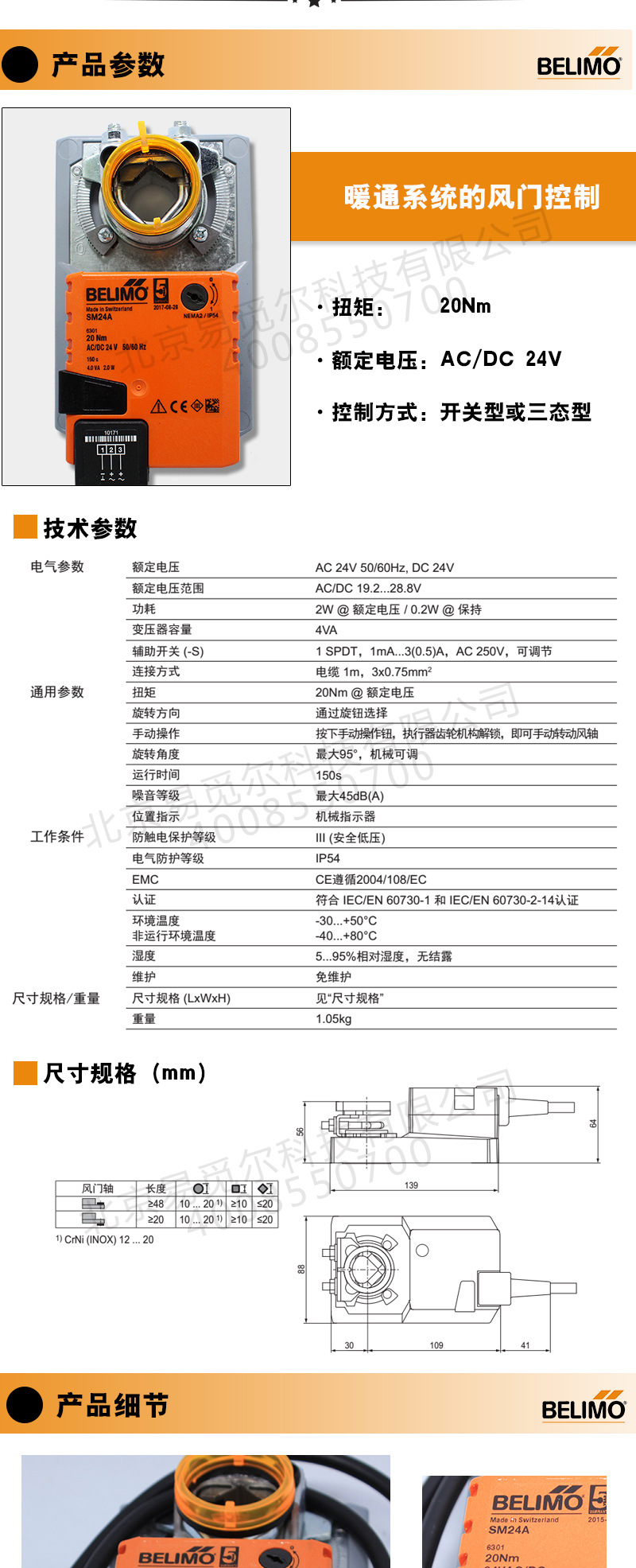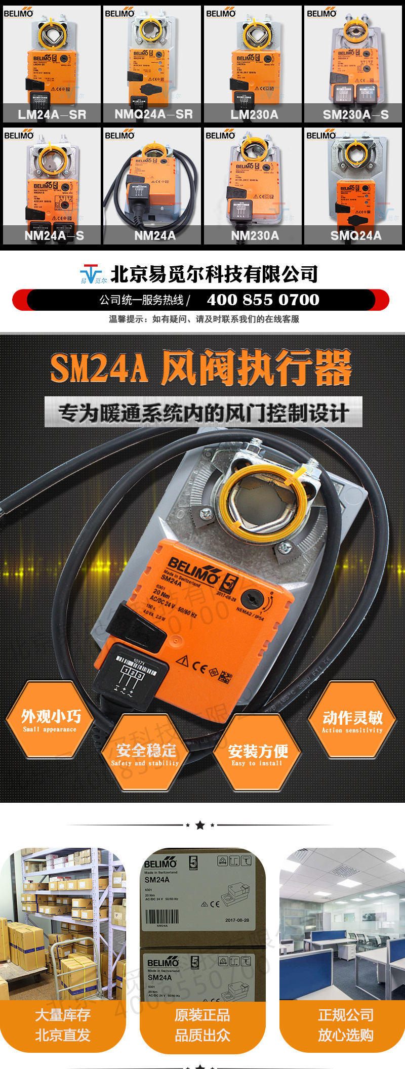 SM24A执行器专为暖通系统内的风门(风阀)控制而设计,其特点如下