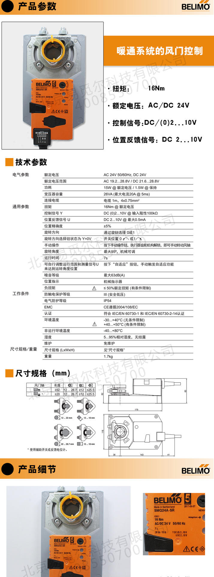 扭矩:16Nm 额定电压AC/DC 24V 控制信号DC(0)2..10V 位置反镄信号DC2..10V