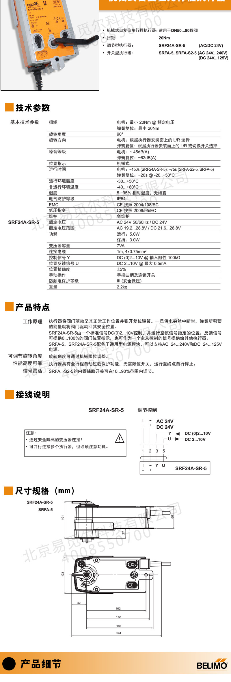 ·扭矩:20Nm ·调节型执行器:SRF24A-SR-5(AC/DC 24V)