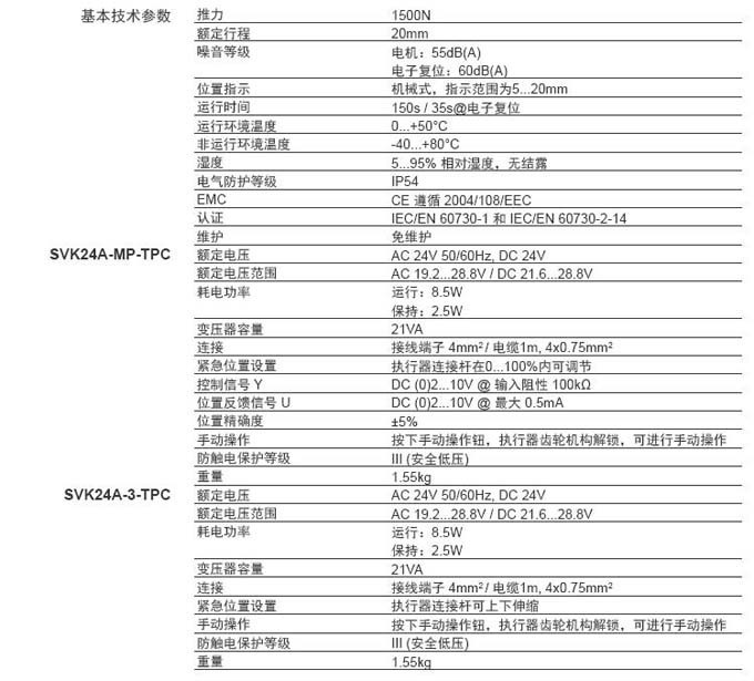 SVK24A-MP-TPC电子式自复位座阀执行器用于二通和三通座阀,推力1500NM,额定行程20NM,控制方式为比例调节型控制。