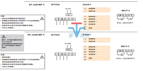 辅助开关 2xSPDT 3A, AC 230V(SY1); 2xSPDT 5A, AC 230V(SY2...12)