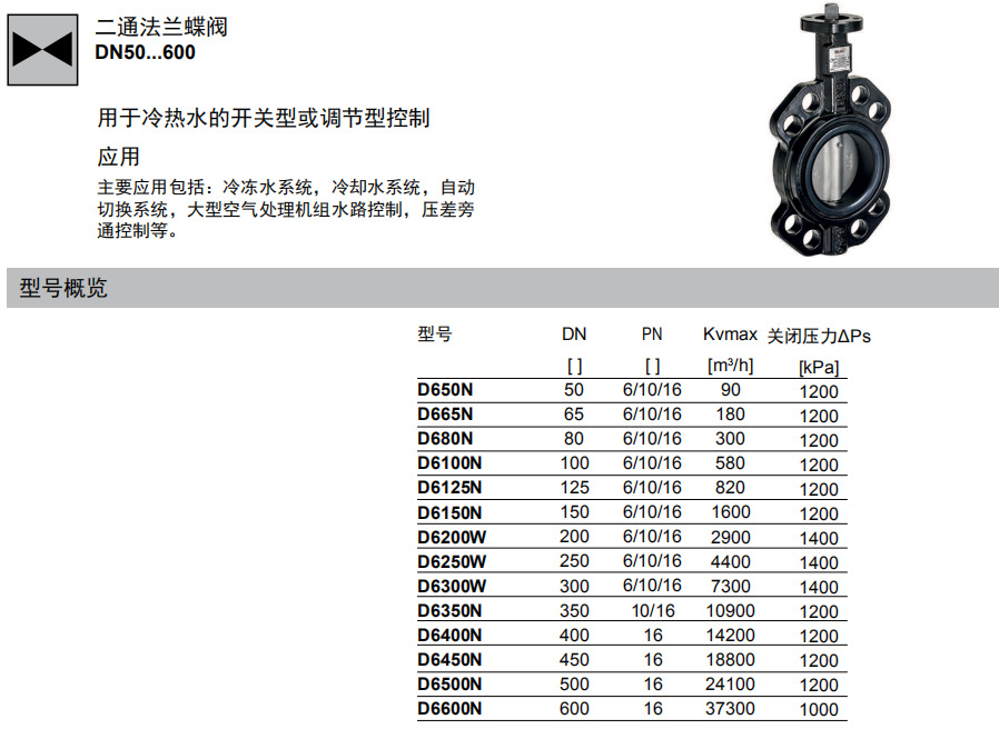 适用于DN50...600 蝶阀