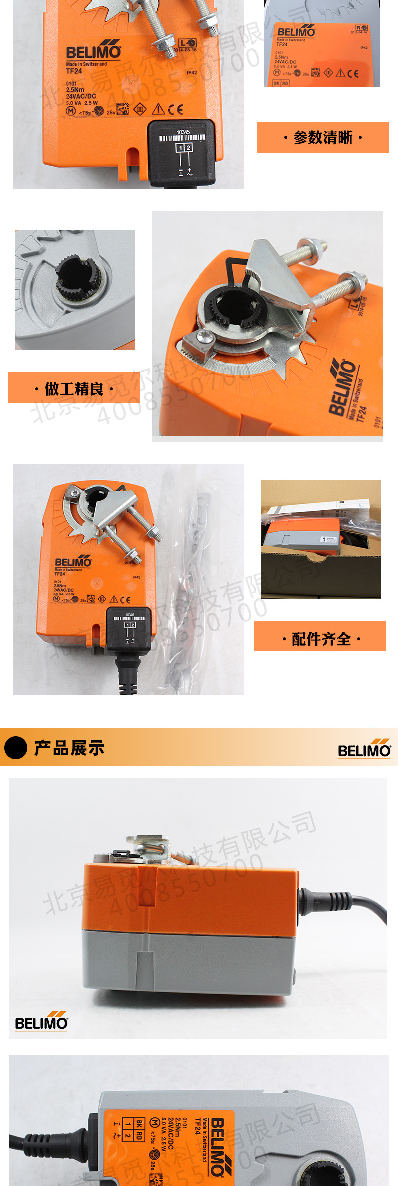 功耗:2.5W @ 运行/1.5W @ 保持 导线规格:5VA 马达扭矩:2NM@额定电压 弹簧扭矩:2NM