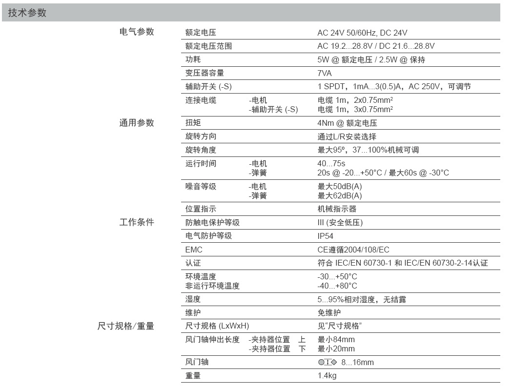 搏力谋执行器TF24-S 专为提供安全保障功能的风门控制而设计。