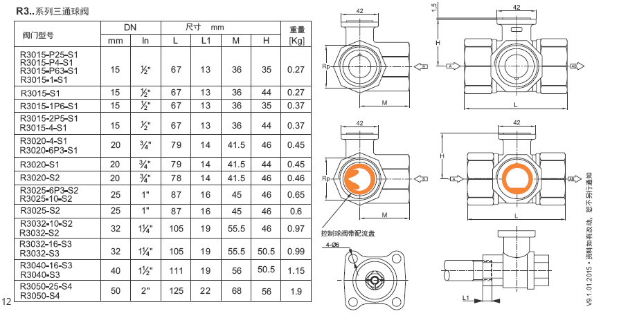 R系列博力谋三通丝口球阀技术参数