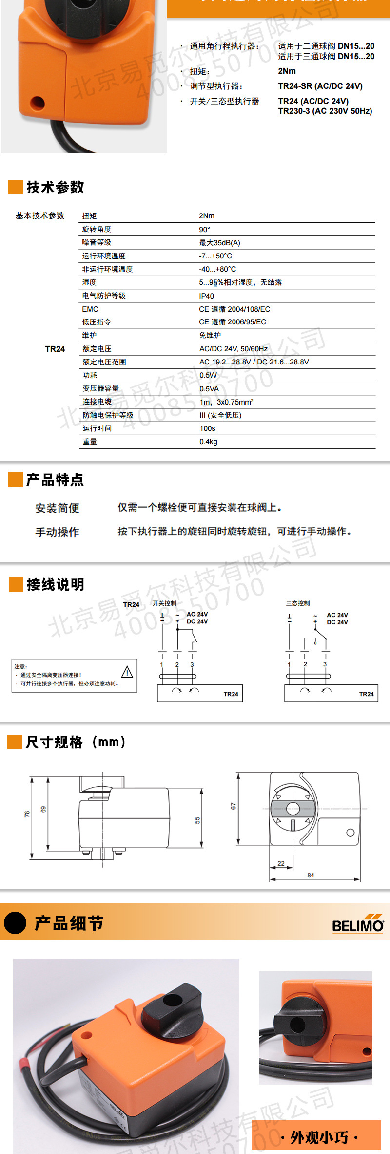 扭矩:2NM 旋转角度:95度 噪音水平:35db(A) 防护等级:IP40 环境温度:-50...+50度