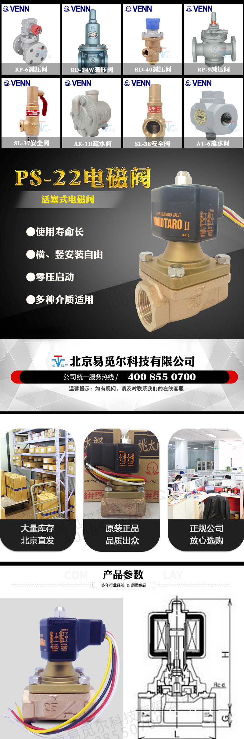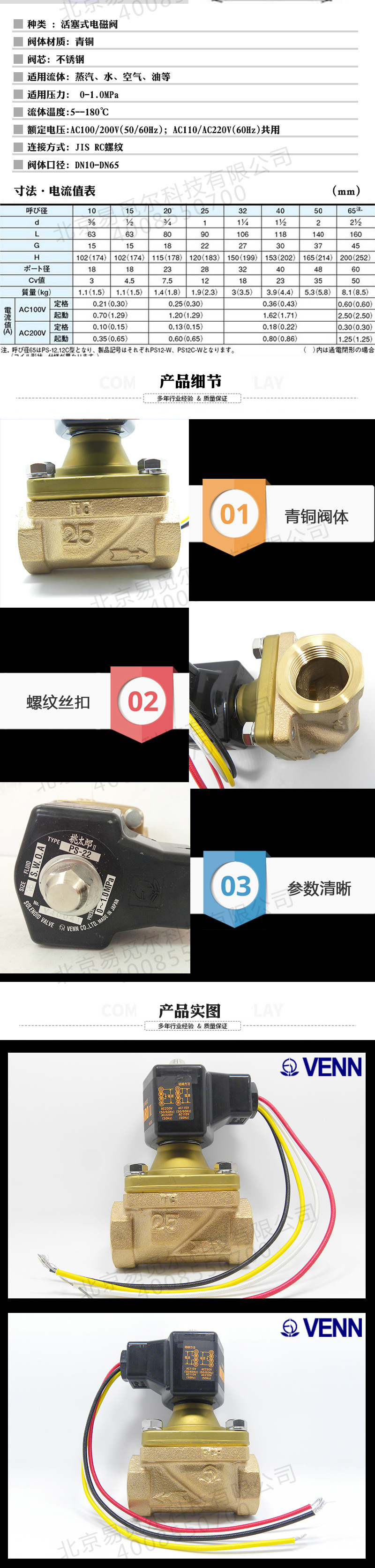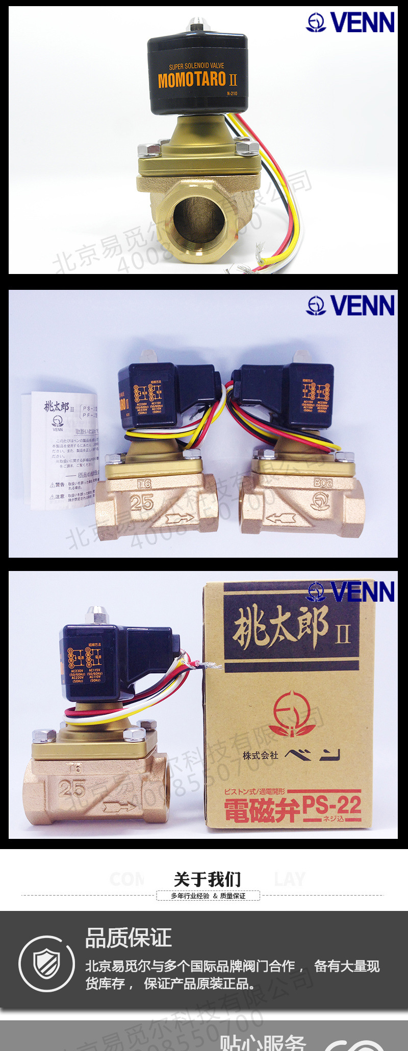 日本VENN不锈钢丝扣电磁阀PS-22阀天原装电子阀桃太郎电磁阀