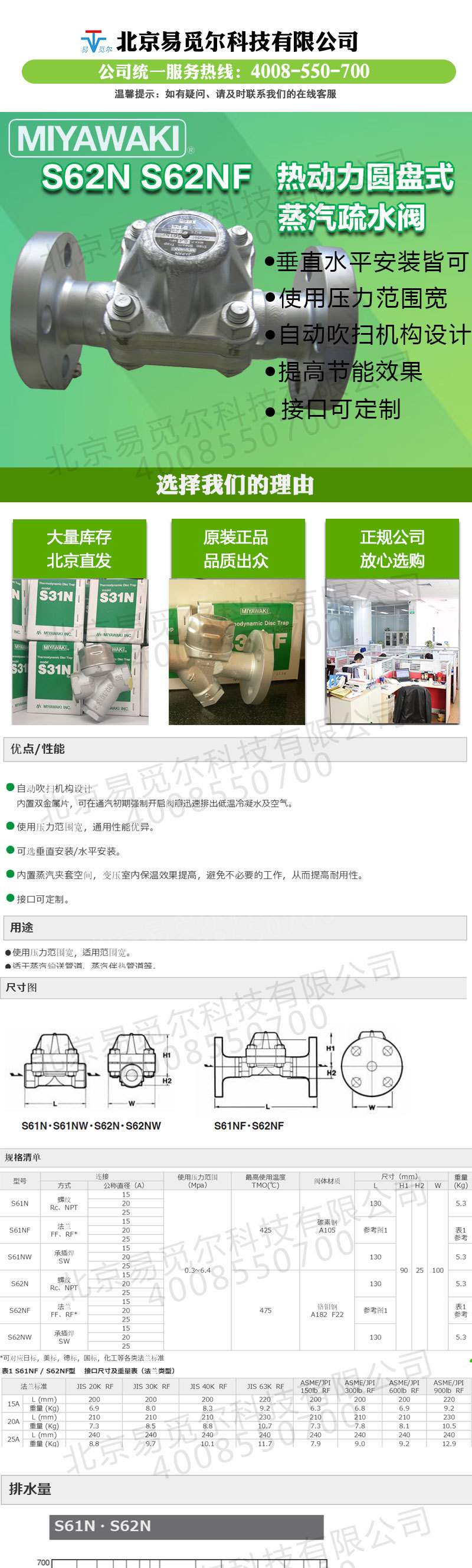 S62N热动力圆盘式蒸汽疏水阀主要用于蒸汽伴热管、储罐伴热、烘干机、蒸馏器、灭菌器。