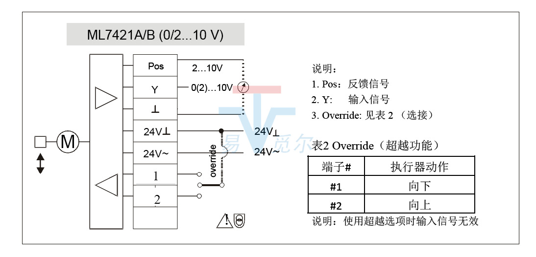 6.0(2)~10 Vdc 输入信号, 2~10 Vdc 位置反馈信号