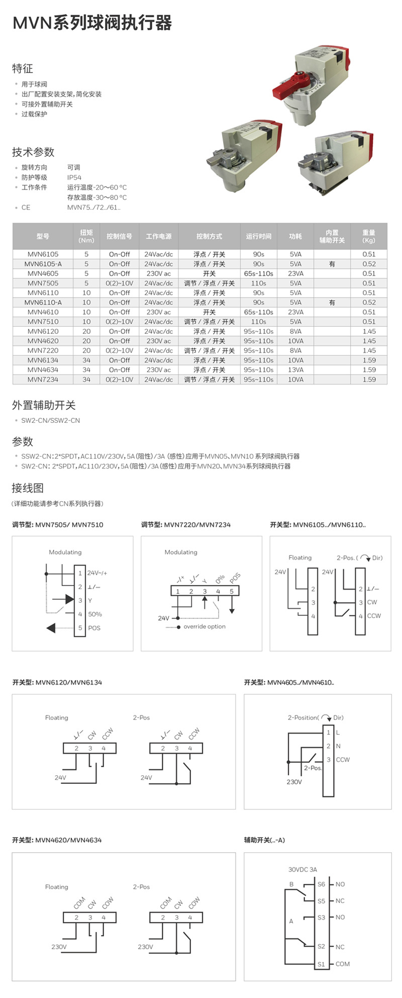 霍尼韦尔Honeywell MVN7220电动球阀执行器实物与参数图: