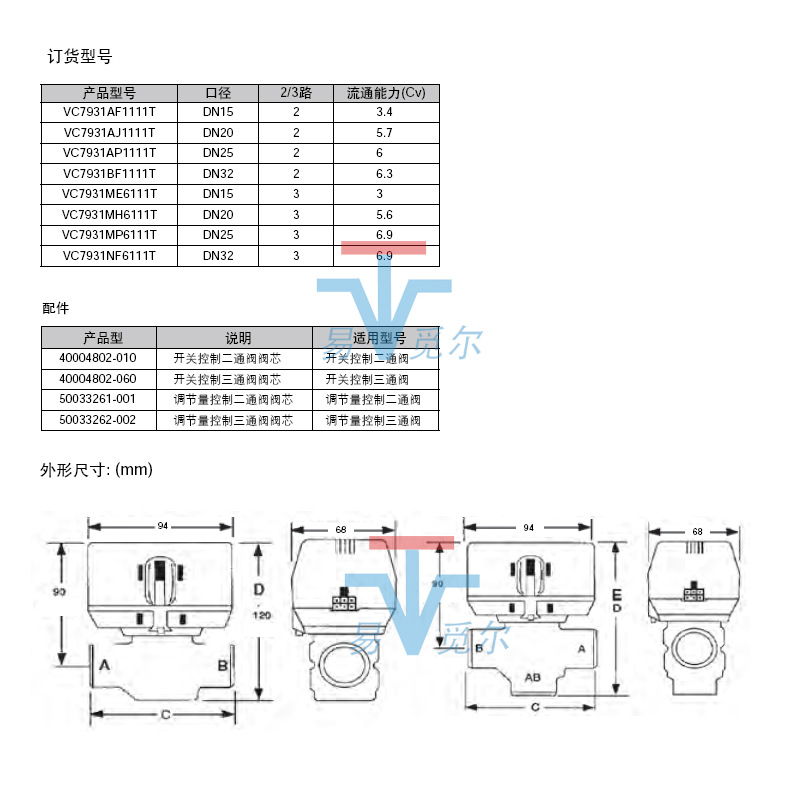 美国霍尼韦尔HONEYWEII VC7931AP1111T VC7931BF1111T 电动阀门提供连续的调节功能,