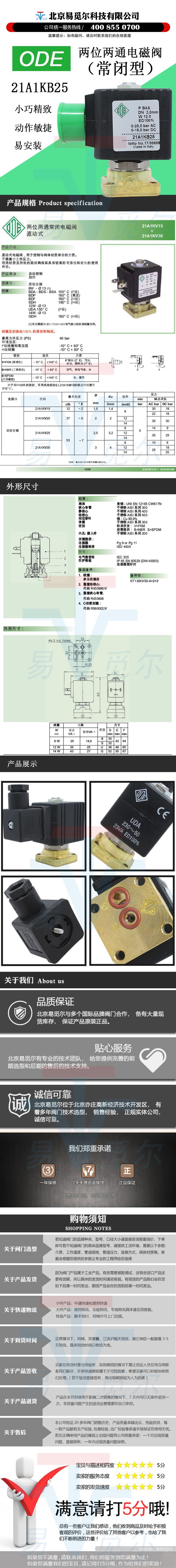 21A1KB25是意大利ODE两位两通常闭型电磁阀,属于直动式电磁阀,21A1KB25是底板安装,粘度不超过12cSt,匹配8W线圈时,交流耐压14bar,直流耐压9bar.流通孔径2.5mm,流动系数3.2L/min.