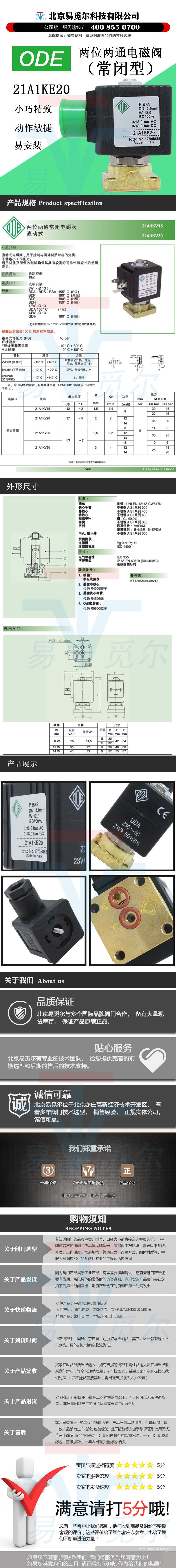 21A1KE20是意大利ODE两位两通常闭型电磁阀,属于直动式电磁阀,底板安装,流通孔径2.0mm,流动系数2L/min,粘度不超过37cSt,匹配8W线圈时,交流耐压不超过22bar,直流耐压不超过16bar.