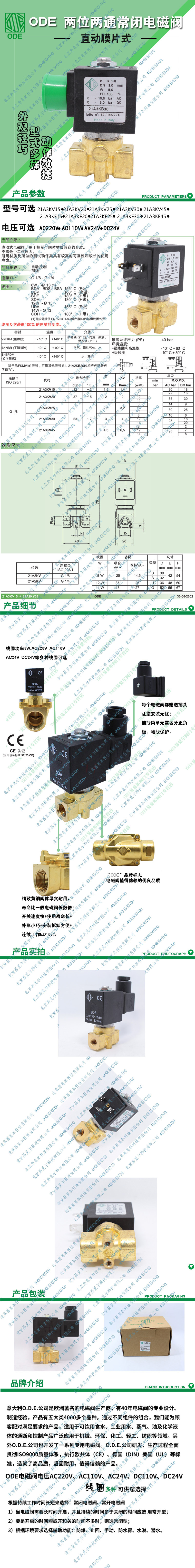 21a3kb30是意大利ODE两位两通常闭型电磁阀,属于直动式电磁阀,口径DN6,流通孔径3mm,流动系数4L/min,匹配8W线圈时,交流耐压10bar,直流耐压5bar.