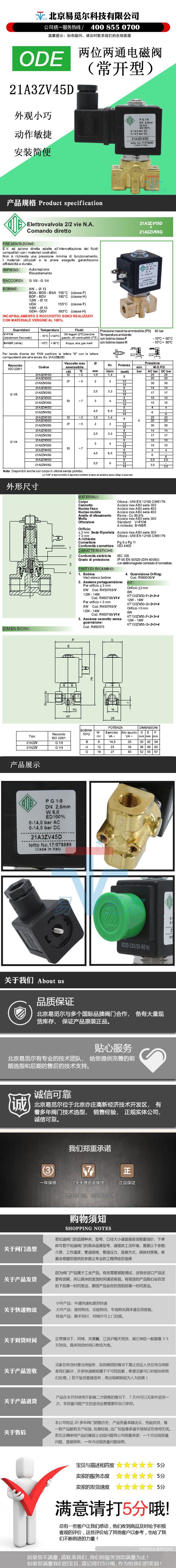 21A3ZV45D是两位两通常开电磁阀,属于直动式,断电是打开状态,通电是关闭状态;21A3ZV45D粘度不超过53cSt,流通孔径4.5mm,流通系数6.5L/min;