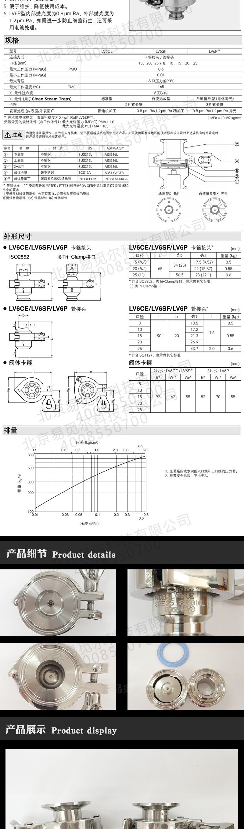 6.LV6P型内部抛光度为0.8pmRa、外部抛光度为1.2umRa、如需进一步防止细菌衍生、还可采用电镀处理。