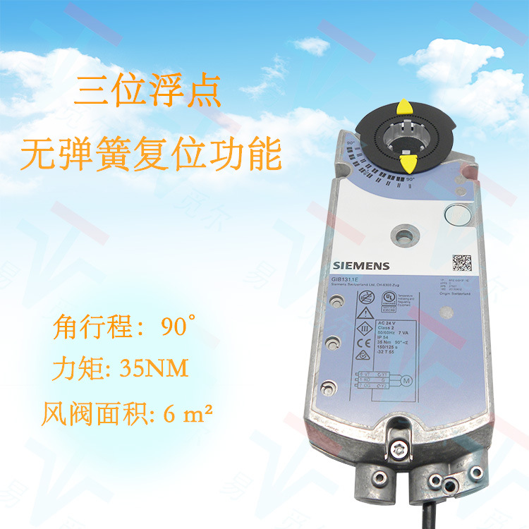 GIB131.1E是无弹簧复位的电动旋转风阀执行器,额定转矩 35 Nm,风阀面积6 m2