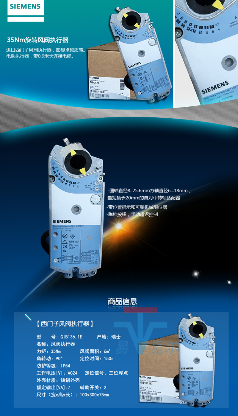 SIEMENS西门子电动风阀执行器 GIB136.1E 开关型风门驱动器35Nm