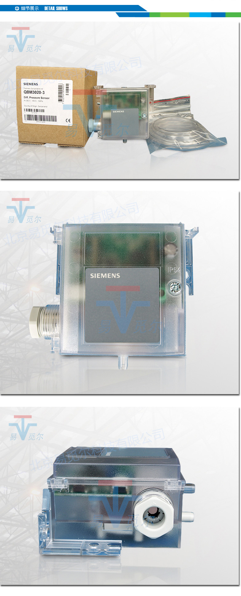 西门子SIEMENS 空气压差传感器 QBM3020-5 差压传感器 0..500pa