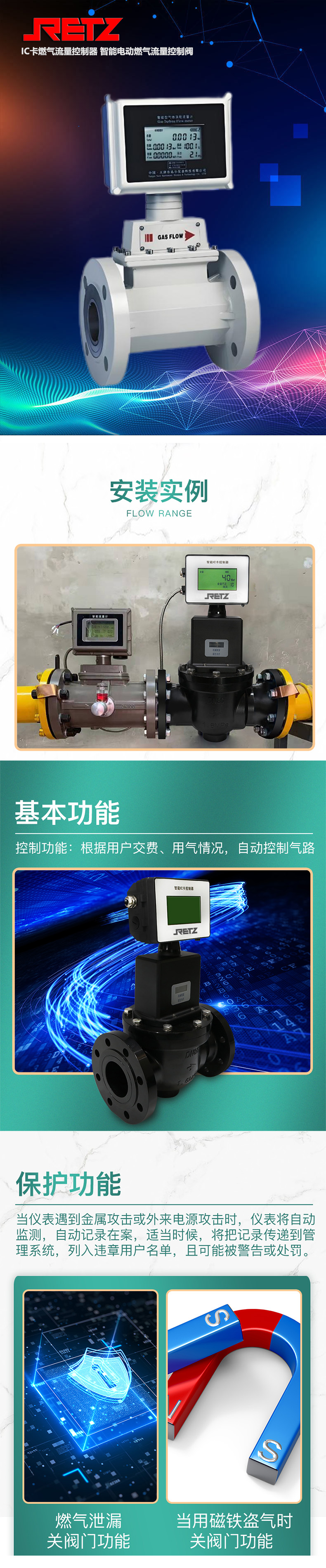 IC卡流量控制器由新型微功耗电动燃气阀门和IC卡收费系统组成。可配接具有远传功能的流量计,如涡轮流量计、旋进旋涡流量计、气体腰轮罗茨流量计、工业膜式表等,实现收费预付费和自动化控制