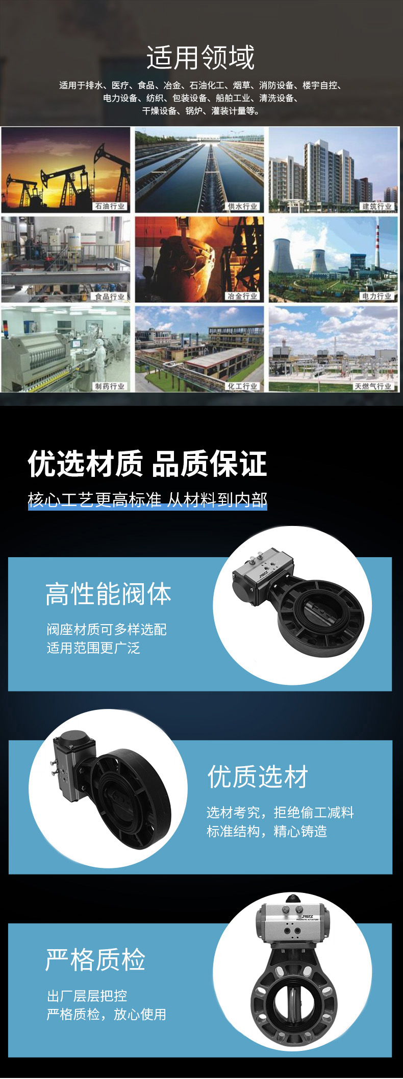 PVC塑料蝶阀凭借其独特的技术原理、合理的结构设计和广泛的功能应用,在给排水、化工、水处理等众多行业的流体控制领域发挥着重要的作用。其良好的化学稳定性、耐腐蚀性、轻便的结构以及有效的流体控制和密封性能,使其成为一种经济实用的阀门选择