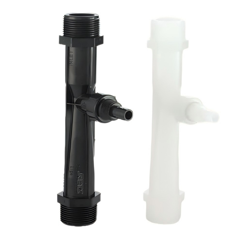 进口塑料射流器(文丘里)又称水射器,它由喷嘴、吸入室、扩压管、单向阀四部份组成,广泛应用于水处理、农业灌溉、臭氧发生器、加氯消毒设备、化工、水产养殖等行业retz Imported plastic jet device (Venturi), also known as water jet device, is composed of four parts: nozzle, suction chamber, expansion pipe, and one-way valve. It is widely used in industries such as water treatment, agricultural irrigation, ozone generator, chlorine disinfection equipment, chemical industry, aquaculture, etc