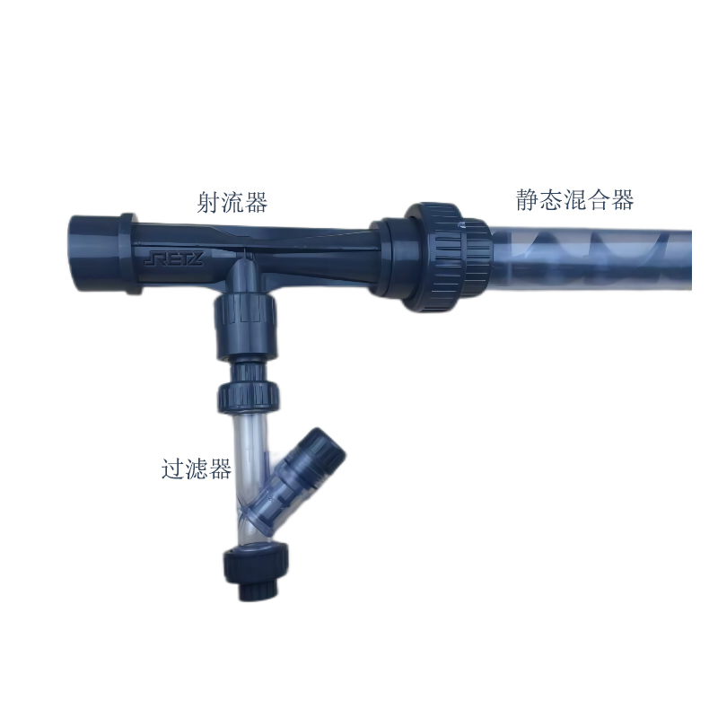 Plastic jet and Venturi jet are automatic gas and drug dispensing equipment developed based on the principle of jet negative pressure. The unique mixing chamber design creates a strong water flow and gas (or liquid medicine) mixing jet. Balanced gas and chemical addition, high efficiency, compact product structure, easy management and maintenance, fast installation, reliable operation, can be started or stopped at any time, low energy consumption, and will not cause secondary pollution to the environment
