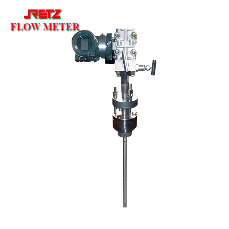 均速管是检测杆、取压口和导杆组成,它横穿管道内部与管轴垂直,在检测杆迎流面上设有多个总压检测孔,分别由总压导压管和静压导压管引出,根据总压与静压的差压值,计算流经管道流量
