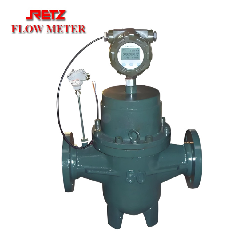 RETZ螺旋双转子流量计对流体流量的测定是在计量腔体内完成的。一对螺旋转子在液体的压力下转动,转子与计量腔壁间形成的封闭空间每回转一次排出8倍阴影体积。因此根据这一流量关系,只要计算转子回转的次数,即可计算出流量累积量,根据每秒转动的次数,即可计算出瞬时流量。