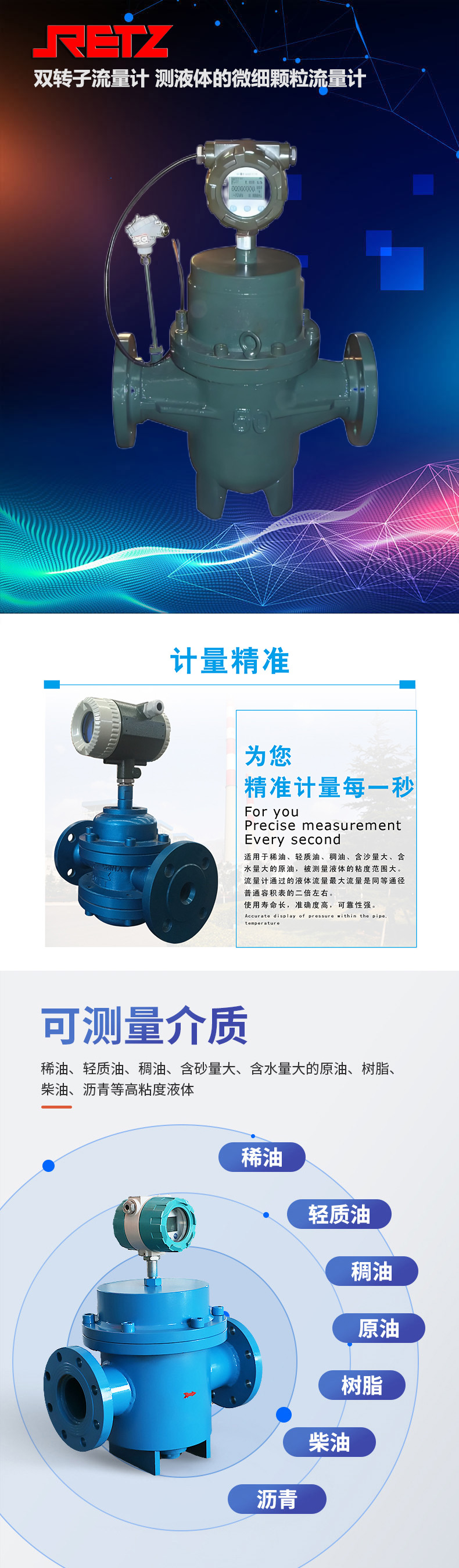 1.适用于稀油、轻质油、稠油、含砂量大、含水量大的,被测量液体的粘度范围大。