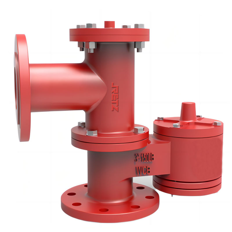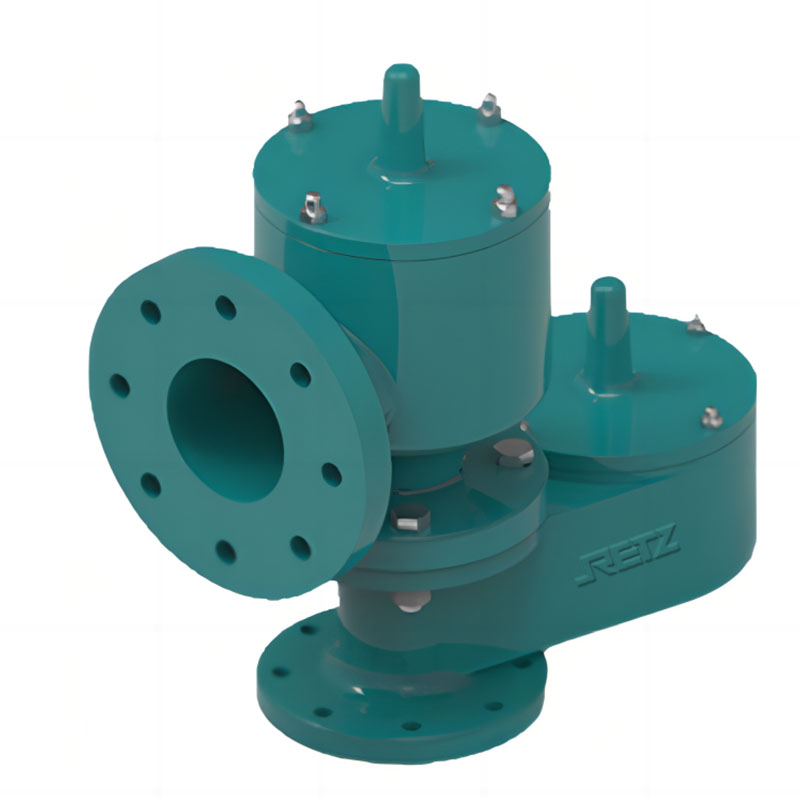 The RETZ breathing valve with a connecting pipe is used in storage tanks where steam needs to be collected or oil and gas toxic gases need to be recovered. The special design of the pressure plate allows the storage tank to eliminate the entry and overflow of steam during breathing. This reduces the evaporation loss of the product and protects the safety of the storage tank. The overflowing steam is discharged to a specific location through the connected flange pipes, greatly improving fire safety.