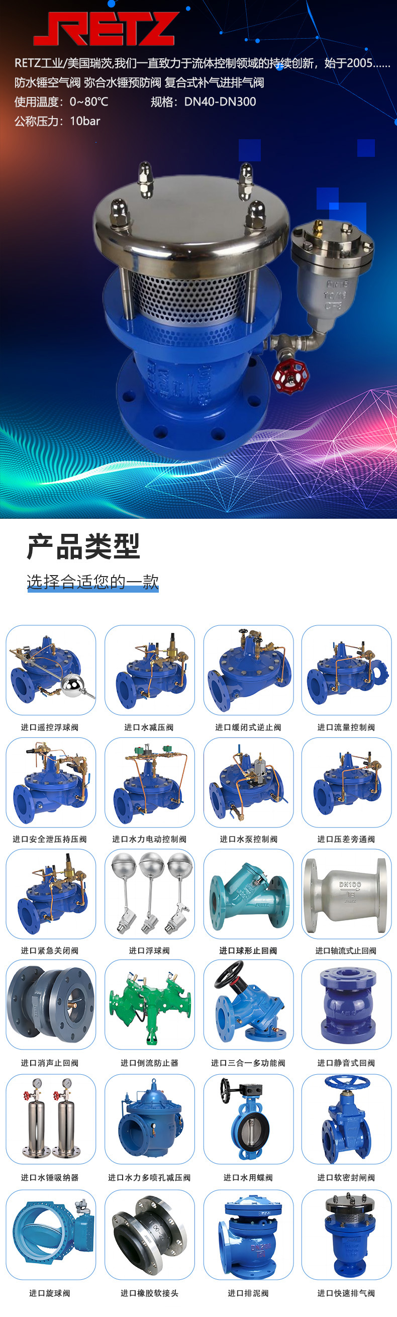 RETZ工业/美国瑞茨,我们一直致力于流体控制领域的持续创新,始于2005……