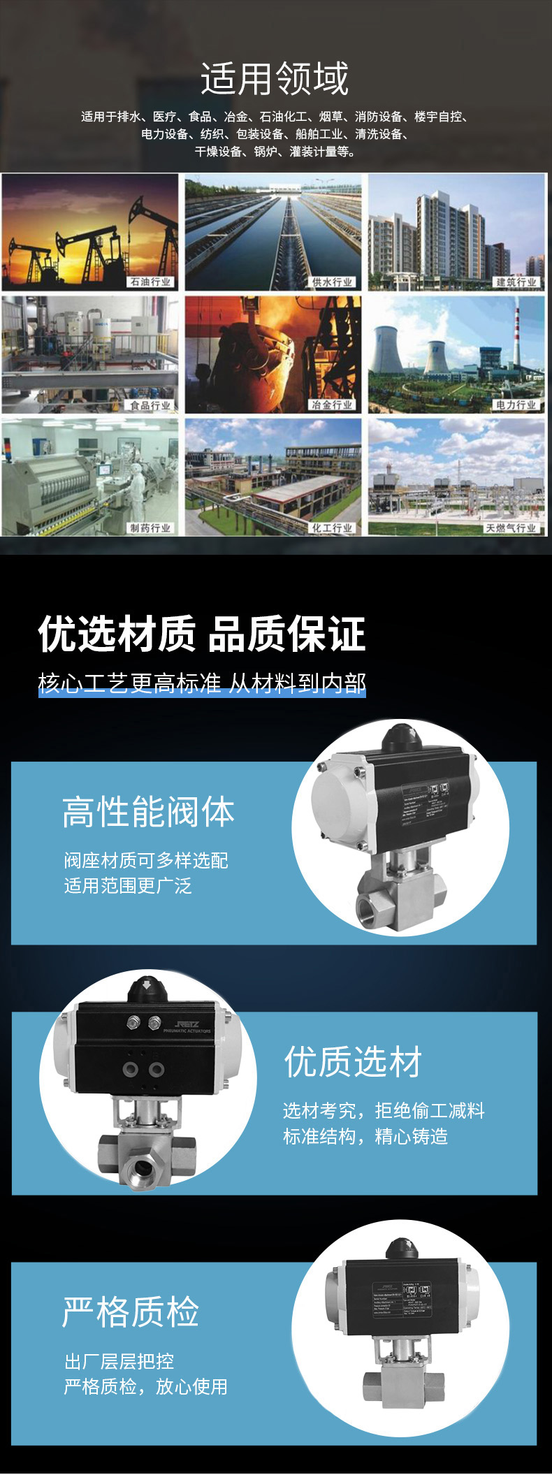 执行器:与阀门配合的气动执行器有单作用和双作用之分。单作用执行器在失气时可根据需要设计为阀位开或阀位关,双作用执行器则在失气时阀位保持。可根据实际使用环境和控制要求进行选择