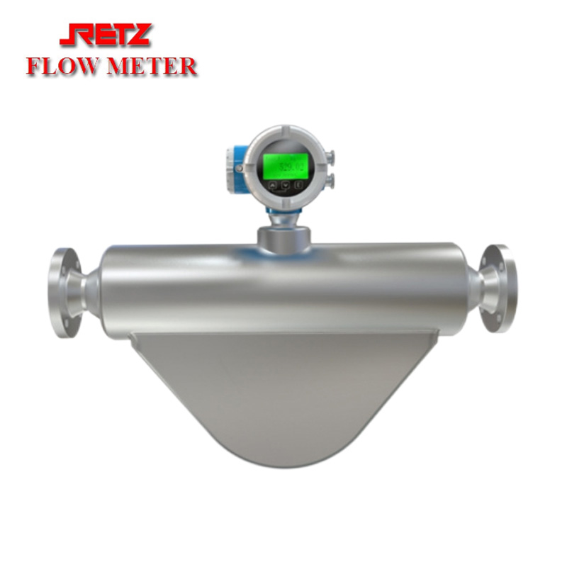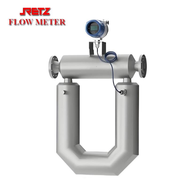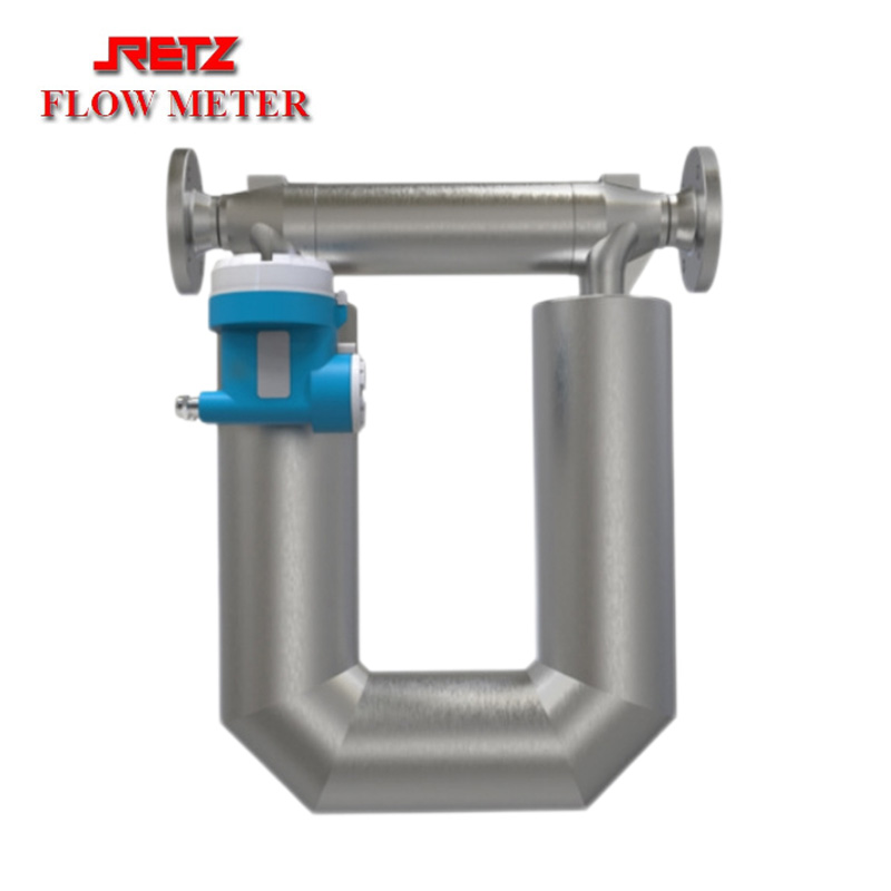 RETZ高压质量流量计是根据科里奥利(Coriolis Force)原理,实现流体质量流量的直接精密测量,而无需任何压力、温度、粘度、密度等换算或修正。内部连接管采用薄壁精密不锈钢管道材质,质量流量计的工作原理决定管道流体的压力波动大小对精度不产生影响,同时采用精密的高压焊接工艺及设备保证仪表本身可承受现场高压流体的安全流通及稳定计量。