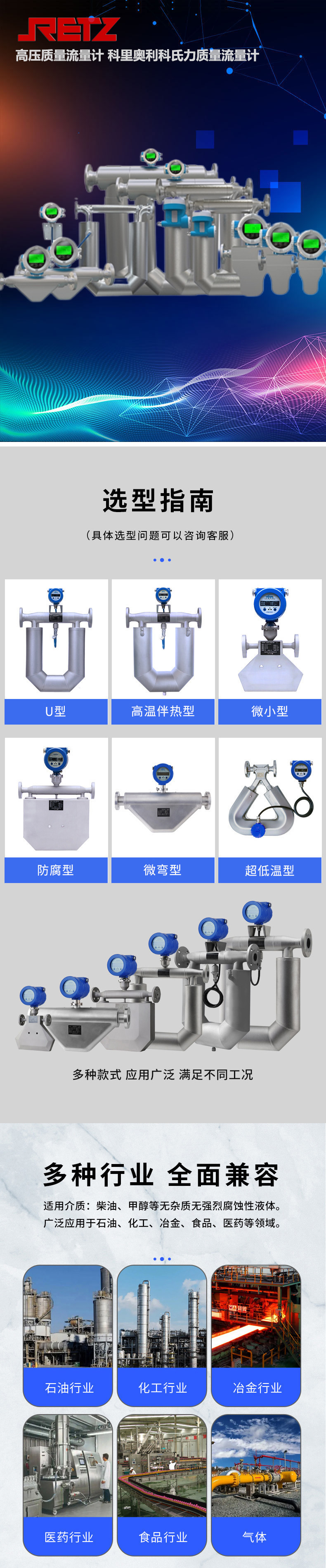 测量准确度高,一般质量流量测量精度可达到0.1%-0.2%,密度测量分辨率可达到0.002-0.02g/cm3;温度测量误差小于0.5度;