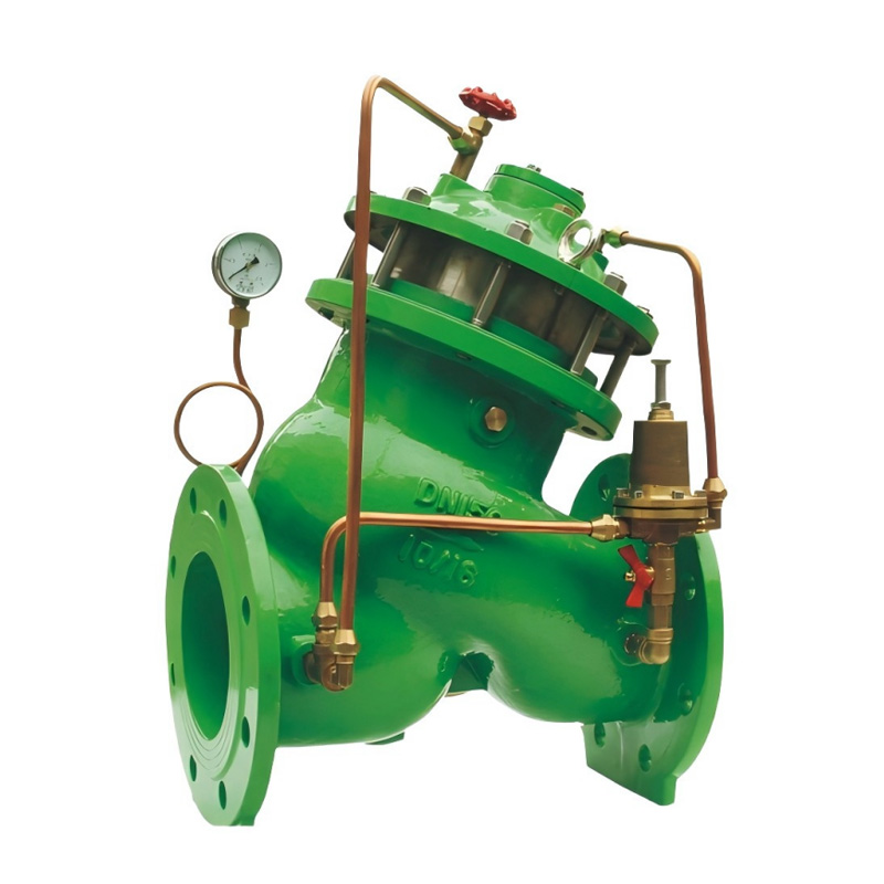 The valve is installed in the line to relieve pressure / hold pressure, which is installed in parallel with the main line. When the upstream pressure is below the set value of the guide valve, the guide valve closed, the upstream pressure diaphragm (piston) above the main valve, the main valve, closed, once the upstream pressure gradually rise over the guide set value, the guide valve will automatically close, the diaphragm (piston) above the pressure diameter guide valve and the ball valve to the downstream, the main valve in the upstream pressure open, a lot of water, until down to the set value, slowly closed, will not produce water hammer and sensitive action.