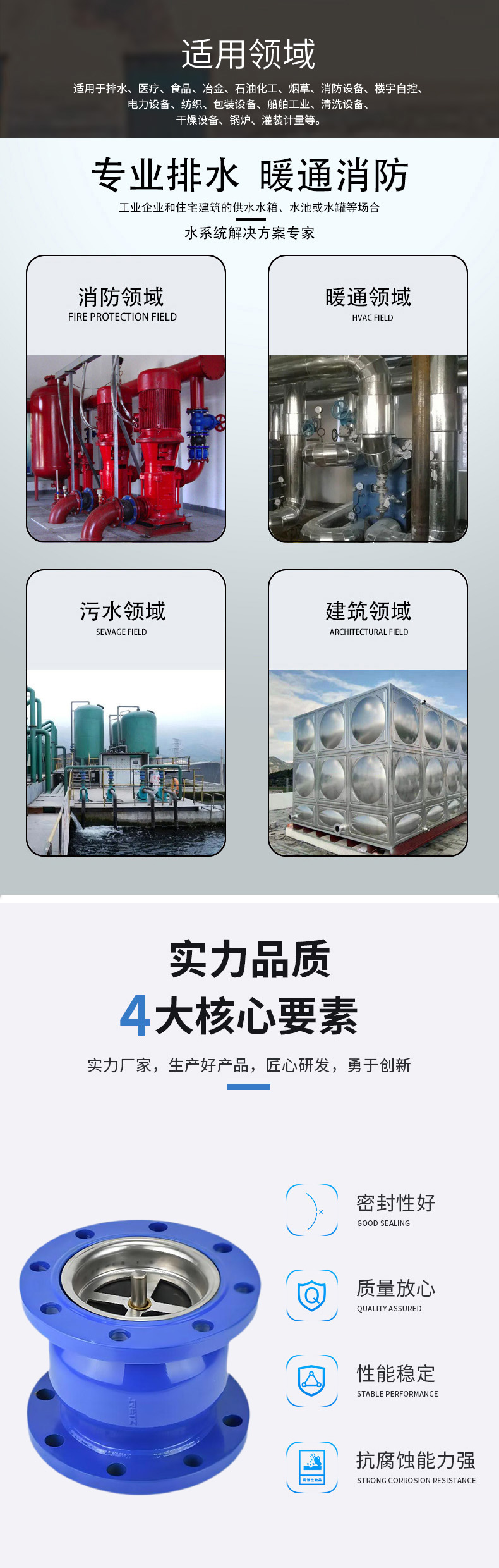 性能:停泵快速关闭,防止水锤水击的发生,达到静音的效果