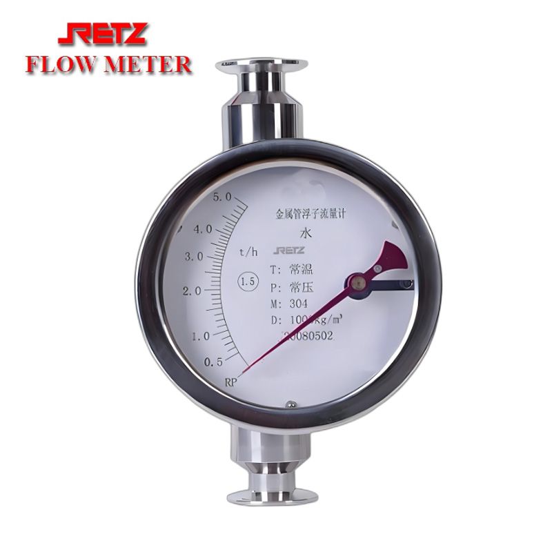 RETZ卡箍式金属管浮子流量计是工业自动化过程控制中常用的一种变面积流量仪表.它具有体积小、检测范围大.使用方便等特点.可用于测量液体、气体以及蒸汽的流量、特别适用于低流速、小流量、高温、耐腐蚀、非导电介质的流量测量。