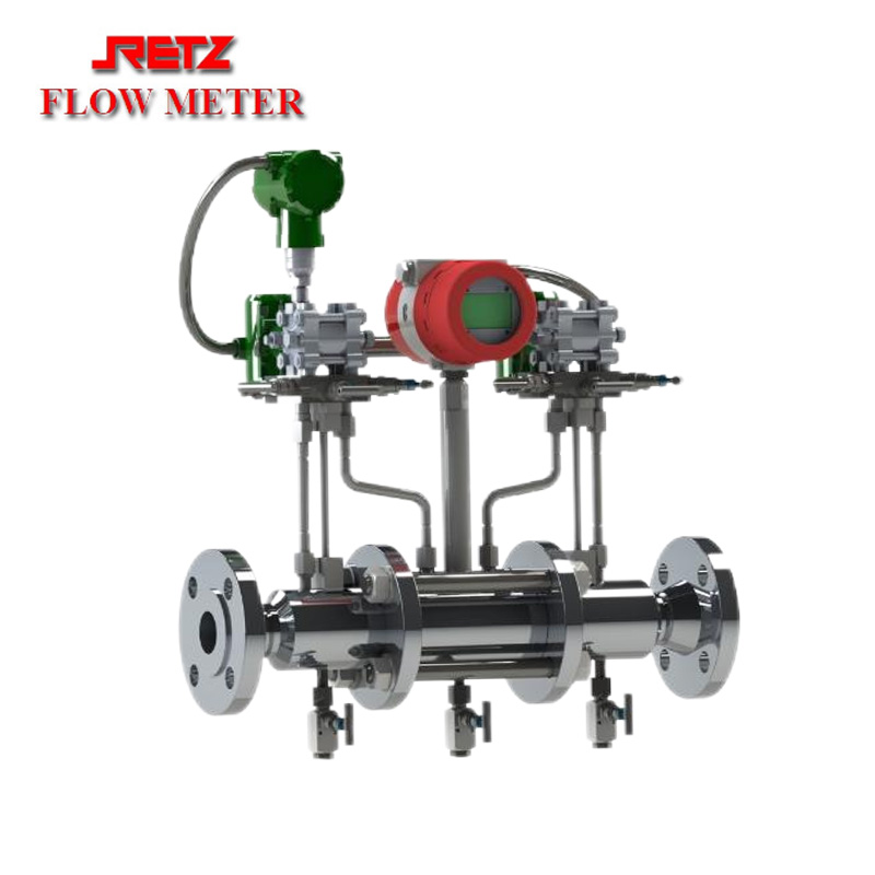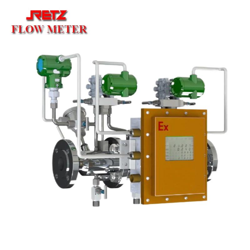 RETZ气液两相流量计是针对天然气井口气液两相在线不分离计量而设计,同时计量井口产气量和产液量的一款专用流量计。它以专用文丘里管为节流元件、采用二台高精度单晶硅复合传感器和一支数字温度计为测量元件,同时测量文丘里管的上游压力、下游压力、总测差压、分测差压、以及流体温度,通过虚高原理为基础的专用算法,准确的计算出气相流量和液相流量。