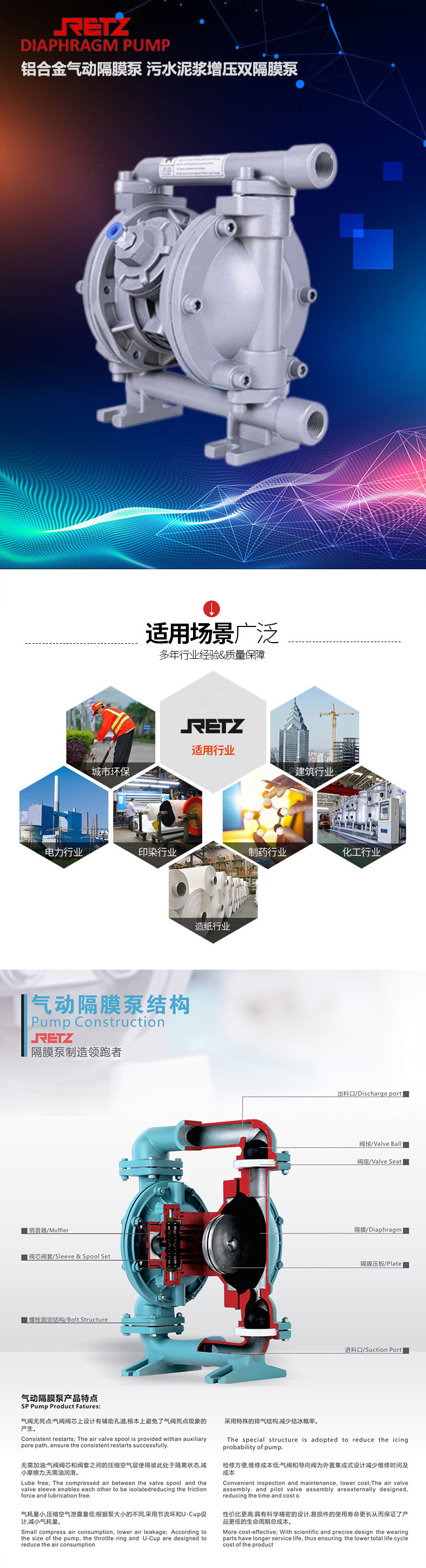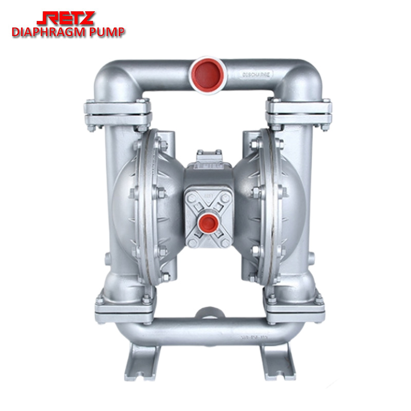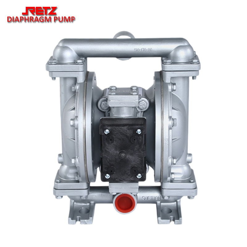 retz铝合金气动隔膜泵是一种新型输送机械采用压缩空气为动力源,对于各种腐蚀性液体,均能予以抽光吸尽。广泛用于石油、化工、电子、陶瓷、纺织系统单位采用,安置在各种特殊场合,用来抽送各种常规泵不能抽吸的介质,均取得了满意的效果,也可根据用户要求,分为铸铁、不锈钢、铝合金、氟塑料等。