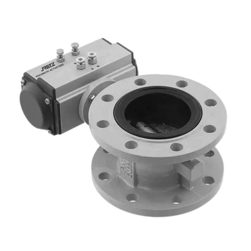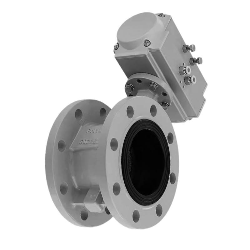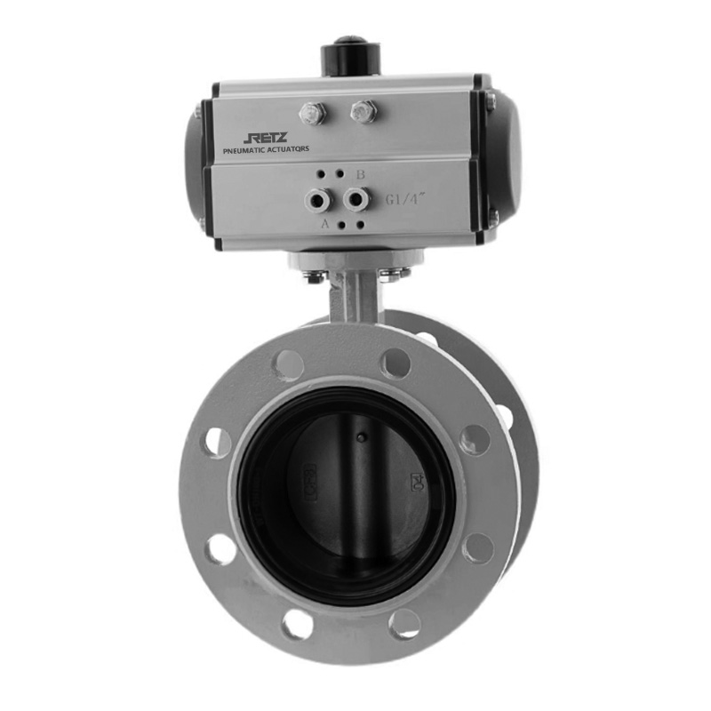 气动法兰蝶阀主要通过蝶板的旋转来控制流体的流动。蝶板安装在阀体的中心轴上,当蝶板旋转时,其与阀体通道形成的开口大小发生变化。在全开状态下,蝶板与管道轴线平行,流体通过的截面积,流量也达到值;随着蝶板的旋转,开口面积逐渐减小,根据流体力学原理(流量与过流面积成正比),流体流量也相应地减少;当蝶板旋转至与管道轴线垂直时,开口面积趋近于零,流体被截断,流量几乎为零。这种基于蝶板旋转角度与流体通过截面积之间的关系,使得气动法兰蝶阀能够在0°- 90°(通常情况下)的旋转范围内,实现对流体流量的连续、控制