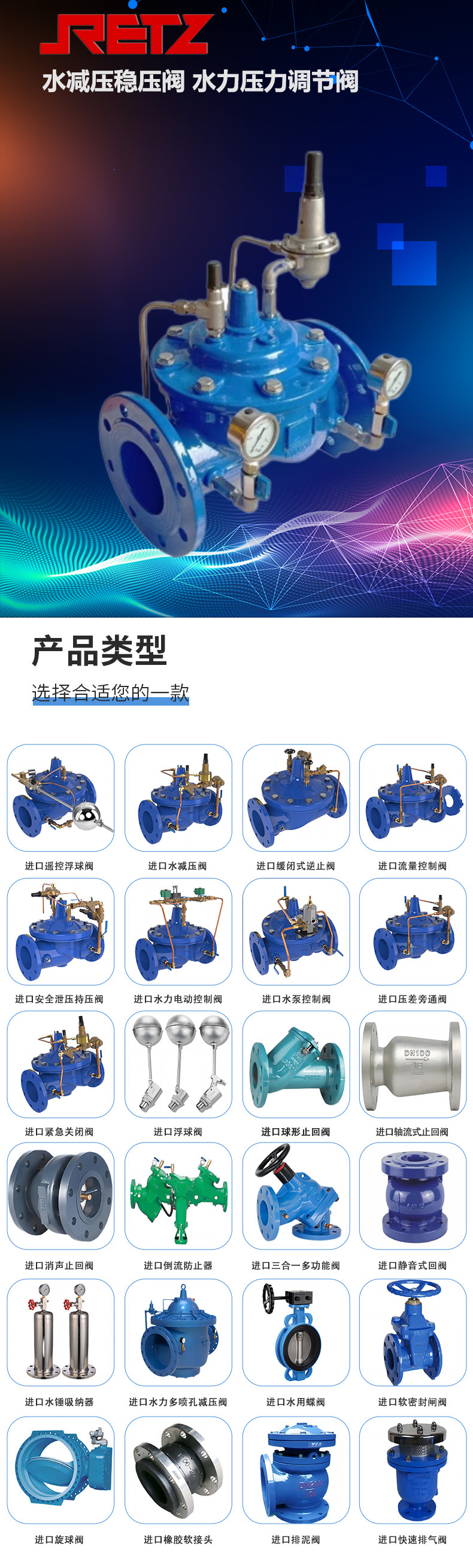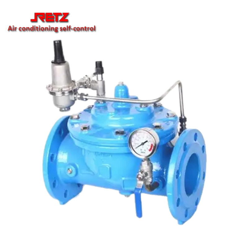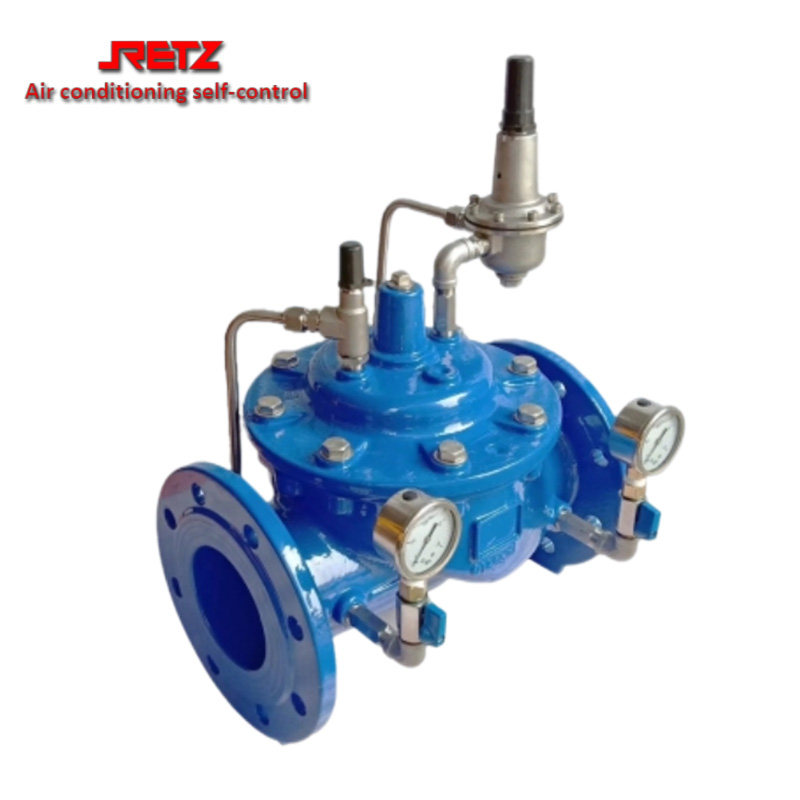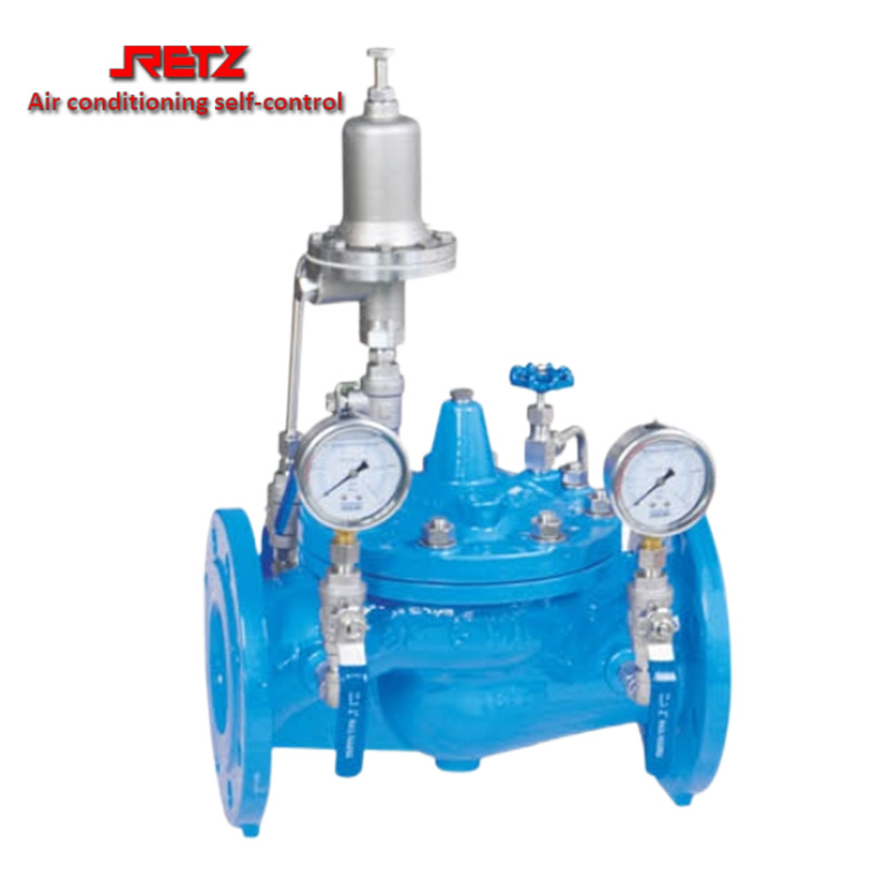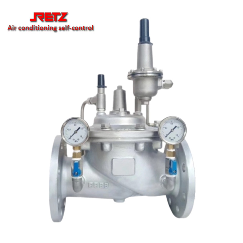RETZ水减压稳压阀是一种利用介质自身能量来调节与控制管路压力的智能型阀门。200X减压阀用于生活给水、消防给水及其他工业给水系统,通过调节减压导阀,即可调节主阀的出口压力。出口压力不因进口压力、进口流量的变化而变化,安全可靠地将出口压力维持在设定值上,并可根据需要调节设定值以达到减压目的。该阀减压,性能稳定、安全可靠,安装调节方便,使用寿命长。